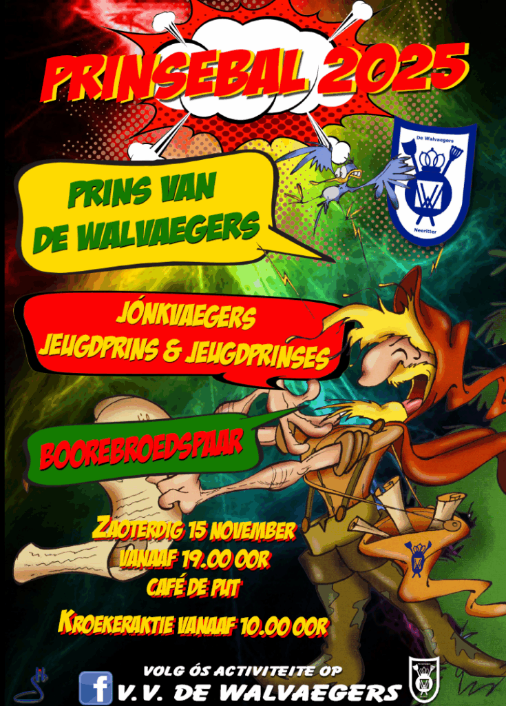 Ut geit weer gebeure! In 2026 zal d’r weer unne Walvaegers Prins en Jeugdprins in de Itterse Vastelaovendj veurop gaon en auch ’t Boorebroedspaar is d’r klaor veur. Ze staon allemaol te popele óm aan de slaag te gaon en d’r ein fieëst van te make wie vanouds. Dus kóm nao ut Prinsebal woea ze bekindj waere gemaakt. Dao wil se toch bie zeen!?